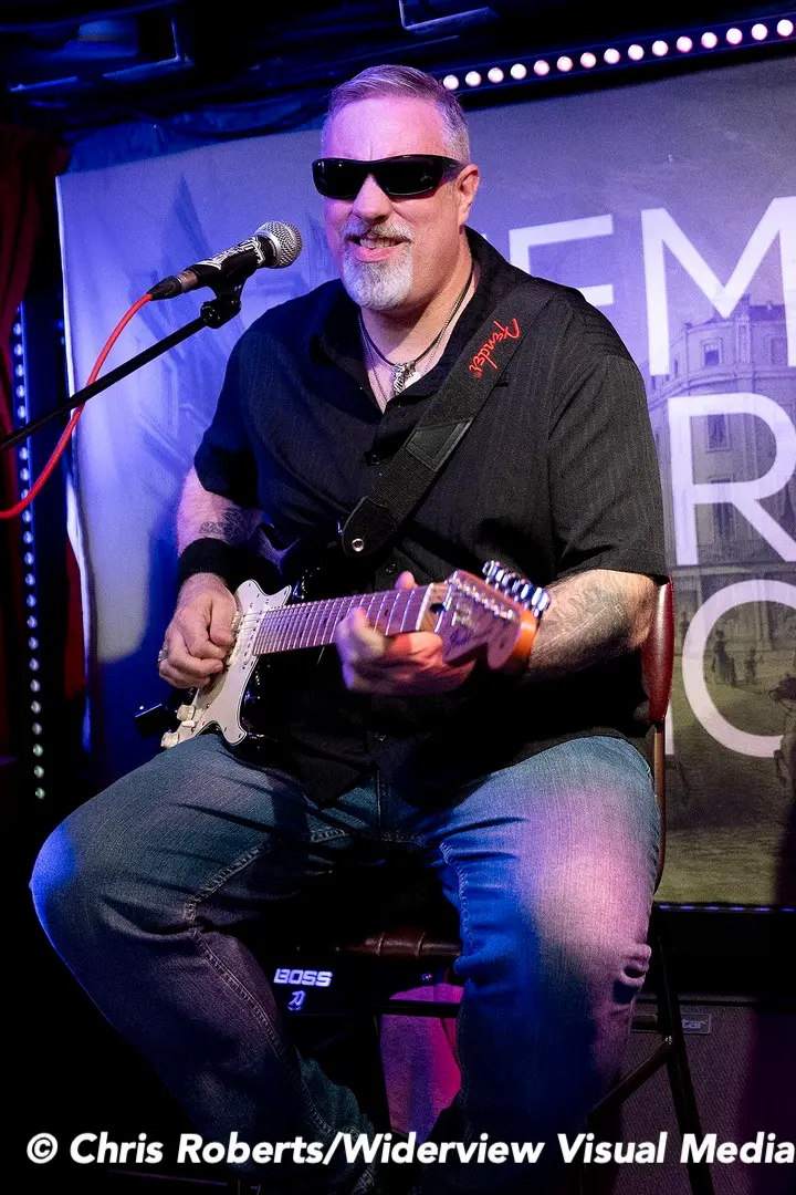 Lead singer & guitarist Jonathan Earp suffers from Ehlers-Danlos Syndrome (EDS) which commonly includes overly flexible joints, stretchy and fragile skin, easy bruising, joint pain, fatigue & balance issues. Due to a recent flare-up Jonathan choose to sit down at this very intimate venue, to protect him for any further damage. Not that this reduced his stage presence, swagger or brilliant guitar playing and singing!